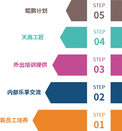 公司非常重视员工的培养,针对不同层级、不同岗位的员工, 除了公司内部组织的培训外,还与博研社、时代光华、时代华商、中智光华等培训机构合作,提升员工专业技能与综合素质,让员工得到全方位发展。 开展“鲲鹏计划”,与长江商学院、中欧国际工商学院、清华大学深圳研究生院、北京大学深圳研究生院、同济大学、中山大学岭南学院、中山大学管理学院等院校合作,进行中高级人才培养。 打造“天高工匠”,用长效机制锤炼技能型和创新型工匠人才,注重能工巧匠和技术专家的培养。